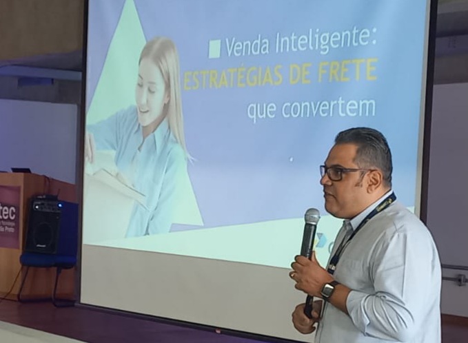 Palestra sobre Estratégias de Frete para o E-commerce, com especialista dos Correios, no lançamento da E-commerce Tour 2025, em Ribeirão Preto, no último mês de agosto.